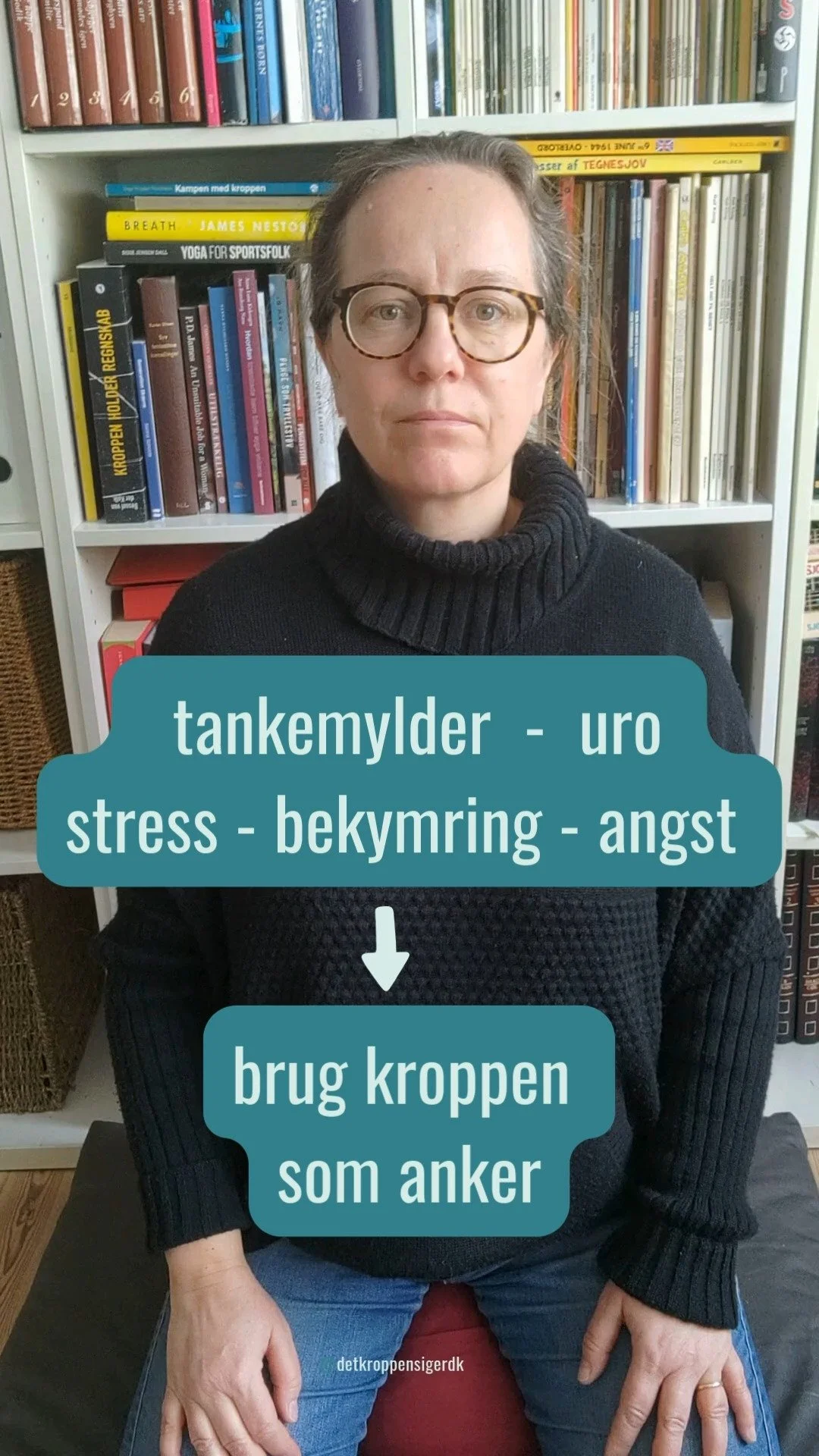 Vi har lært at være meget fokuserede på vores hoved og tanker - og de fleste af os har til gengæld ikke lært, hvordan man faktisk lytter til sin krop og mærker efter i sig selv. For eksempel at være opmærksom på at vi spænder op i kroppen, på vores vejrtrækning, på hvordan kroppen og nervesystemet reagerer, når vi f.eks. bliver usikre, bange, stressede eller får et chok. Eller lægge mærke til hvis vi har svært ved at slippe spændingerne og sammentrækningerne, og de bliver mere eller mindre kroniske.